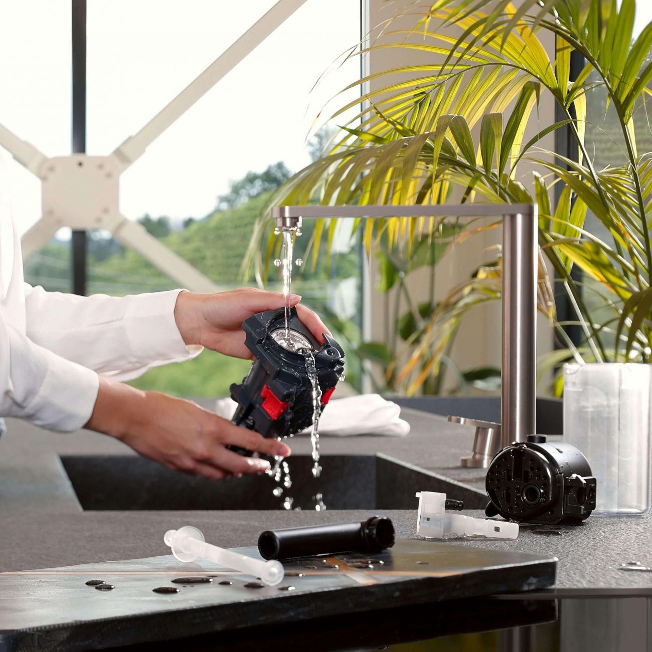 Благодаря мощности в 1450 Ватт, аппарат практически не требует времени на приведение в рабочее положение при выходе из режима ожидания. Помпа мощностью 15 бар на все 100% извлекает вкус и аромат из каждого грамма зерен, чтоб вы могли ощутить полный букет. Кофе с добавлением молока также получается высокого качества. Но чтобы так было всегда, мы рекомендуем обязательно использовать функцию очистки вспенивающей системы перед приготовлением новой порции лате или капучино. Кофемашина удалит остатки молока с ее внутренних механизмов, перед тем как готовить снова. Один поворот регулятора! Это займет лишь секунды, не больше, а вот качество напитка станет, без преувеличения, идеальным.