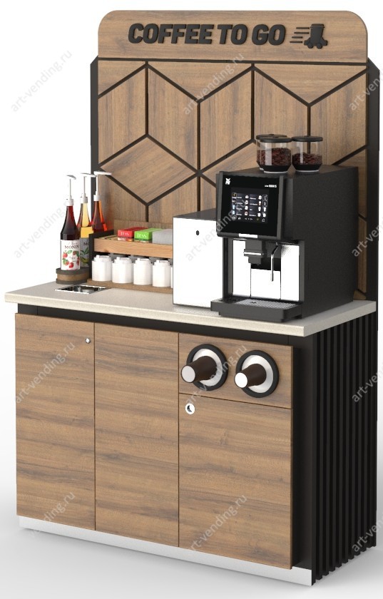 Кофейный модуль Арабика М2-2 - это премиальное решение, он идеально подойдет для размещения в бизнес-центре, спортивном клубе, холле гостиницы, в МФЦ или в любом другом учреждении, где необходим качественный кофесервис. Стильное цветовое решение, высокая надстройка с возможностью индивидуального брендирования  плюс декоративные черные решетки не оставят Ваш кофейный уголок без внимания. Продуманные детали, удобство использования и эргономика, высокое качество материалов и современные технологии исполнения. В комплект поставки входят широкая, вместительная тумба, два встроенных диспенсера для стаканов, встроенный мусоропровод из нержавеющей стали с люком, гастроемкость, регулируемые опоры, технологические отверстия с декоративными заглушками для подвода воды и электричества, плинтус из нержавеющей стали, накопитель с распашными створками. Кофемашина, органайзер и аксессуары поставляются отдельно.