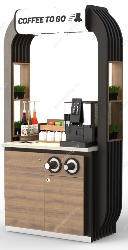 Кофейный модуль Арабика М3-1 - это премиальное решение, он идеально подойдет для размещения в бизнес-центре, спортивном клубе, холле гостиницы, в МФЦ или в любом другом учреждении, где необходим качественный кофесервис. Стильное цветовое решение, высокая надстройка арочного типа с возможностью индивидуального брендирования  плюс декоративные черные решетки не оставят Ваш кофейный уголок без внимания посетителей. Продуманные детали, удобство использования и эргономика, высокое качество материалов и современные технологии исполнения. В комплект поставки входят тумба, надстройка, лайтбокс, два встроенных диспенсера для стаканов, встроенный мусоропровод из нержавеющей стали с люком, гастроемкость, регулируемые опоры, технологические отверстия с декоративными заглушками для подвода воды и электричества, плинтус из нержавеющей стали, накопитель с распашными створками. Кофемашина, органайзер и аксессуары поставляются отдельно.