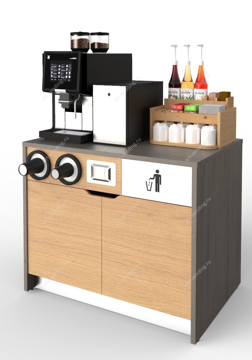 Кофейный модуль Робуста М1-3 функционален и идеально подойдет для размещения в офисе, салоне красоты, гостинице, магазине и в любом другом учреждении, где необходим качественный кофесервис. Продуманные детали, два встроенных диспенсера для стаканов и один дополнительный диспенсер для салфеток, удобство использования и эргономика, высокое качество материалов и современные технологии исполнения не оставят равнодушными потребителей. В комплект поставки входят тумба, два встроенных диспенсера для стаканов, один диспенсер для салфеток, встроенный мусоропровод из нержавеющей стали с люком и информационной наклейкой, регулируемые опоры, технологические отверстия с декоративными заглушками для подвода воды и электричества, плинтус из нержавеющей стали, накопитель с распашными створками. Кофемашина, органайзер и аксессуары поставляются отдельно.