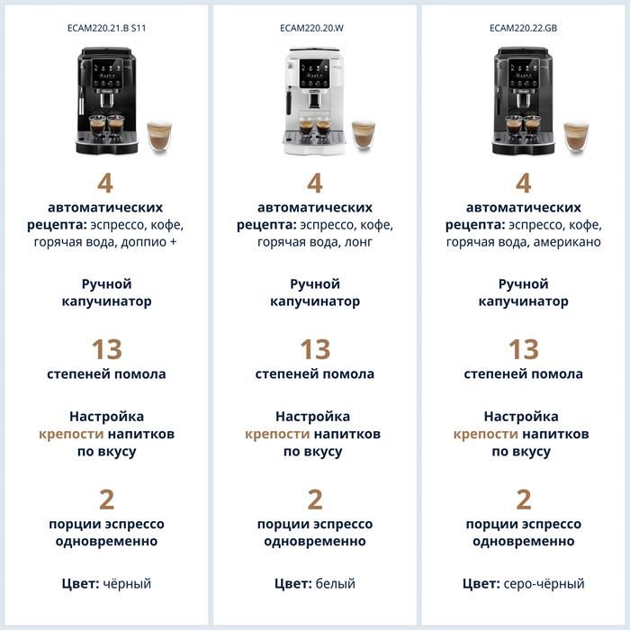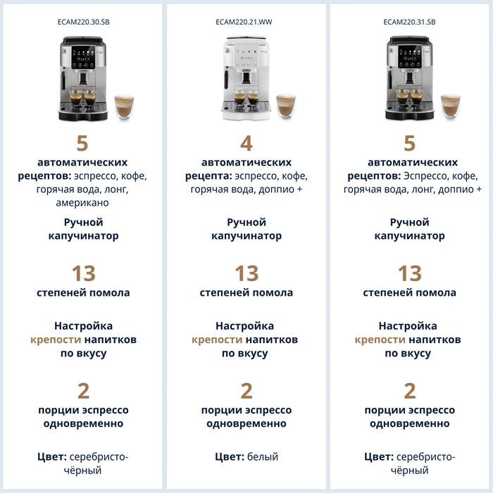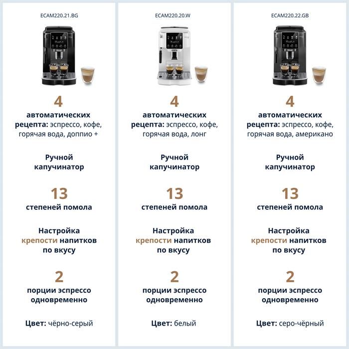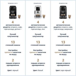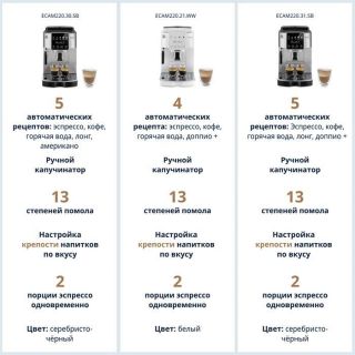 Уникальные особенности: Возможность использования фильтра для воды, программирование жесткости воды, возможность использования предварительно молотого кофе