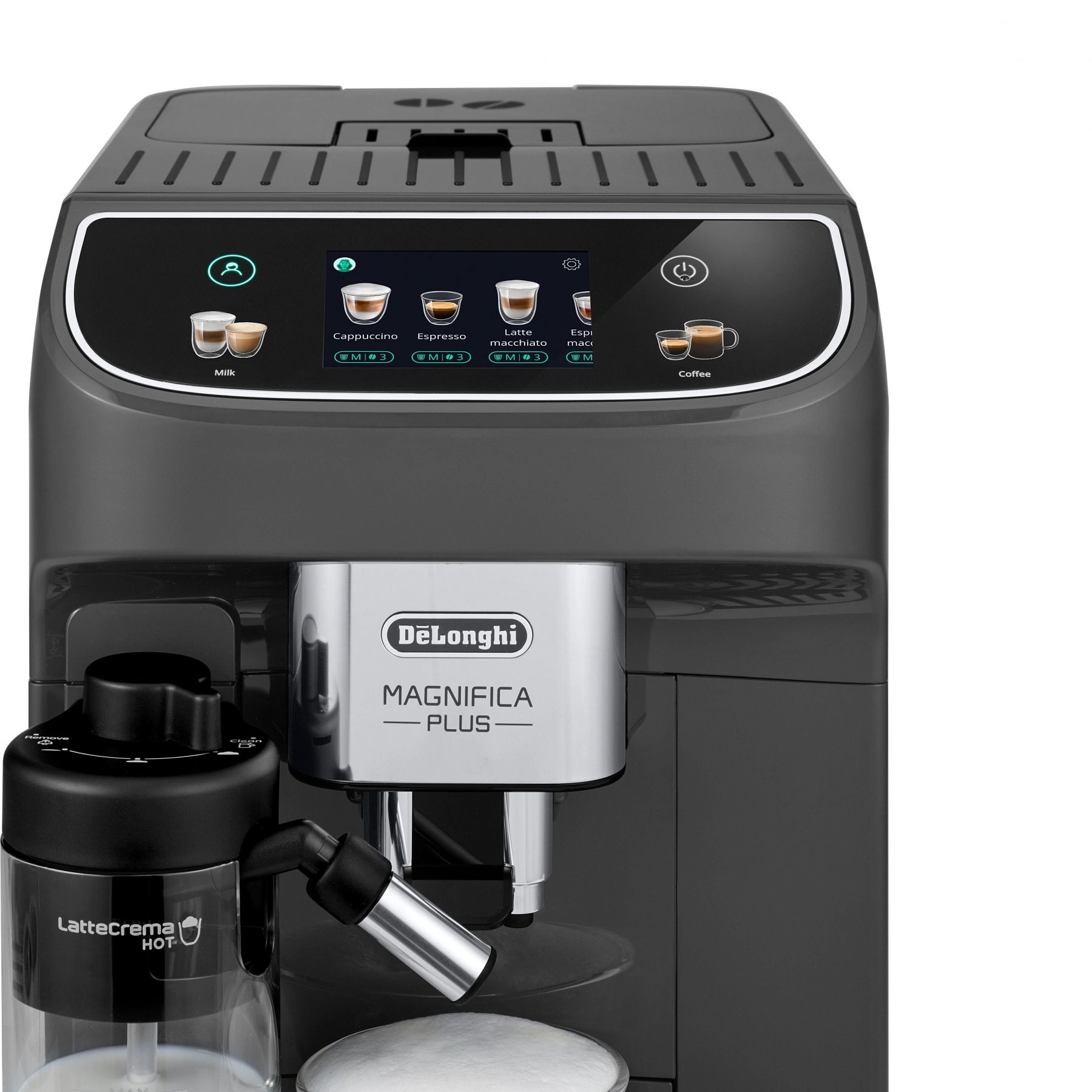 De'Longhi Magnifica Plus имеет 4 настраиваемых пользовательских профиля, позволяющих улучшить качество кофе. Цветной сенсорный TFT-дисплей с диагональю 3,5 дюйма позволяет переключаться между напитками и персонализировать их простым и интуитивно понятным способом. Металлическая рамка окружает панель управления, подчеркивает ее и придает устройству высококачественный характер. Система горячего молока LatteCrema Hot с регулируемой молочной пеной обеспечивает идеальное наслаждение выбирайте легкую, кремовую или плотную молочную пену для более широкого ассортимента напитков. Интуитивно понятный цветной TFT-дисплей с диагональю 3,5 дюйма Cенсорные кнопки прямого выбора для легкой персонализации и простоты использования. Молочная система LatteCrema с регулируемой консистенцией молочной пены и автоматической очисткой До 15 различных рецептов кофе и молока. «Моя функция» позволяет индивидуально регулировать аромат, количество кофе и молока для всех напитков. Функция «Extra Shot» для дополнительного усилителя.