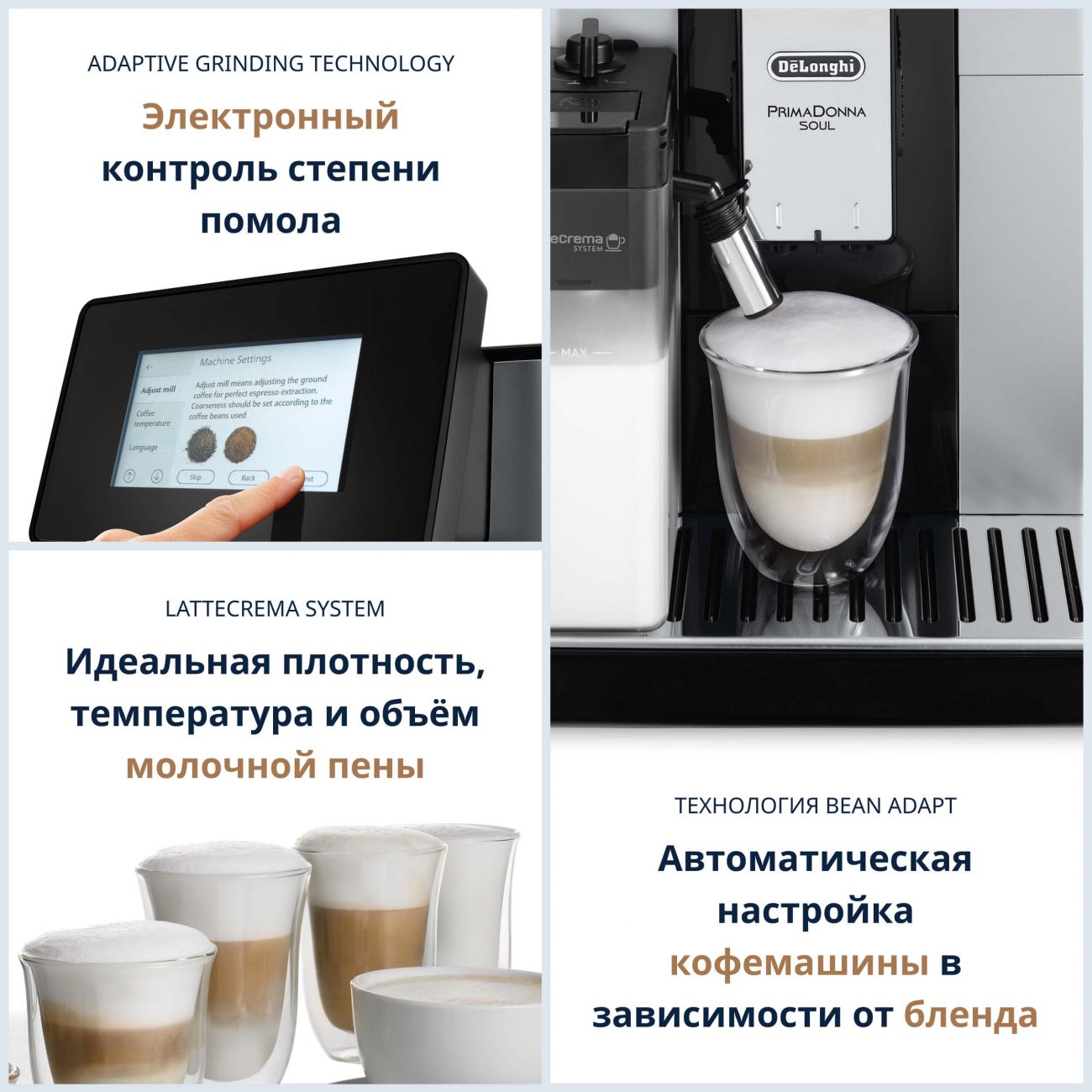 С автоматической кофемашиной DeLonghi ECAM610.74.MB удовольствие от кофе выходит за рамки привычного — это гармония технологий, вкуса и итальянской элегантности в каждой чашке.