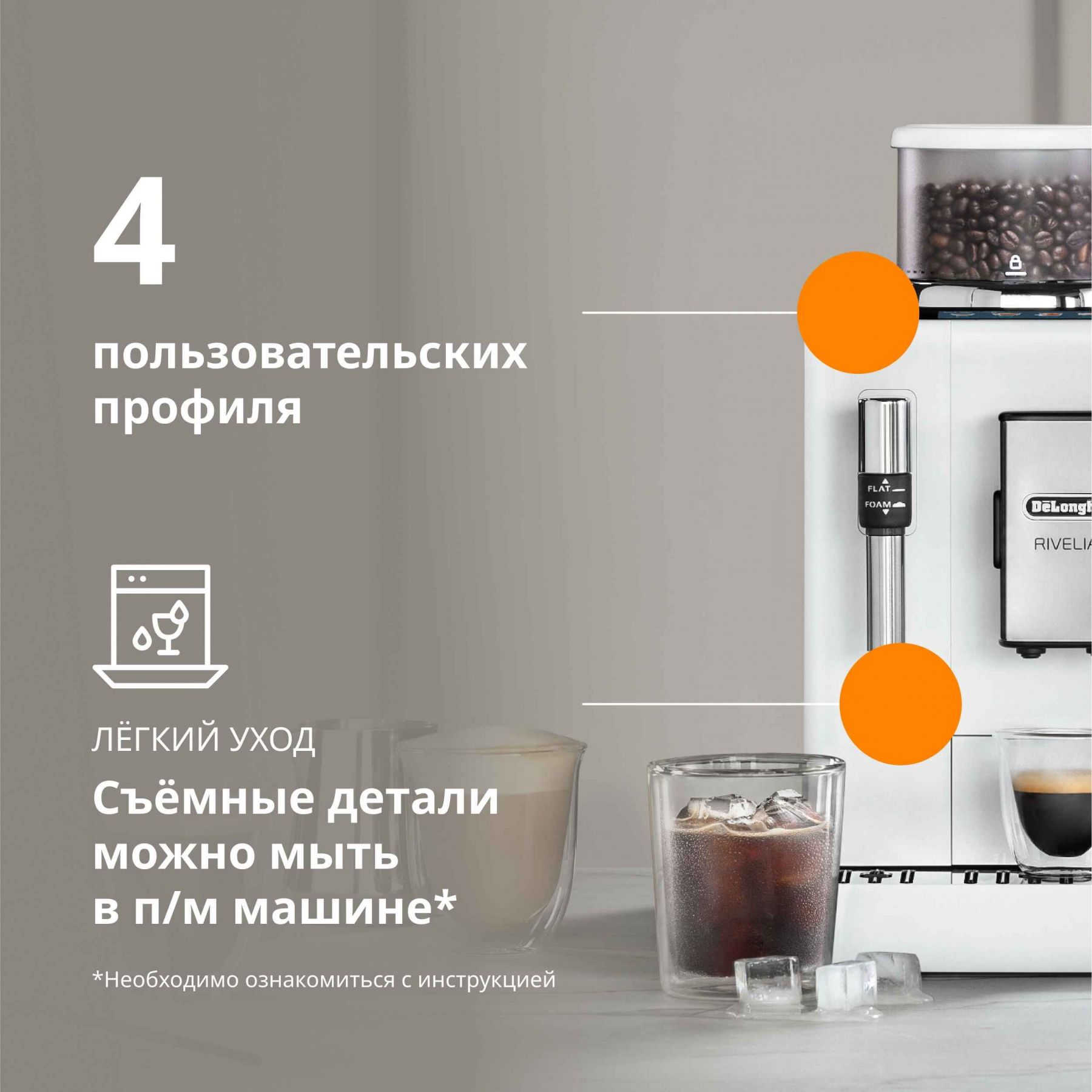 Погрузитесь в мир кофе вместе с De'Longhi Rivelia. Исследуйте бесконечное разнообразие зерен с помощью системы Bean Switch, наслаждайтесь захватывающими впечатлениями на 3,5-дюймовом цветном сенсорном экране с богатой анимацией и индивидуальными программами приготовления кофе. Создайте кремовую пену с помощью ручного капучинатора для молока в компактной машине, которая адаптируется к вашему стилю.
