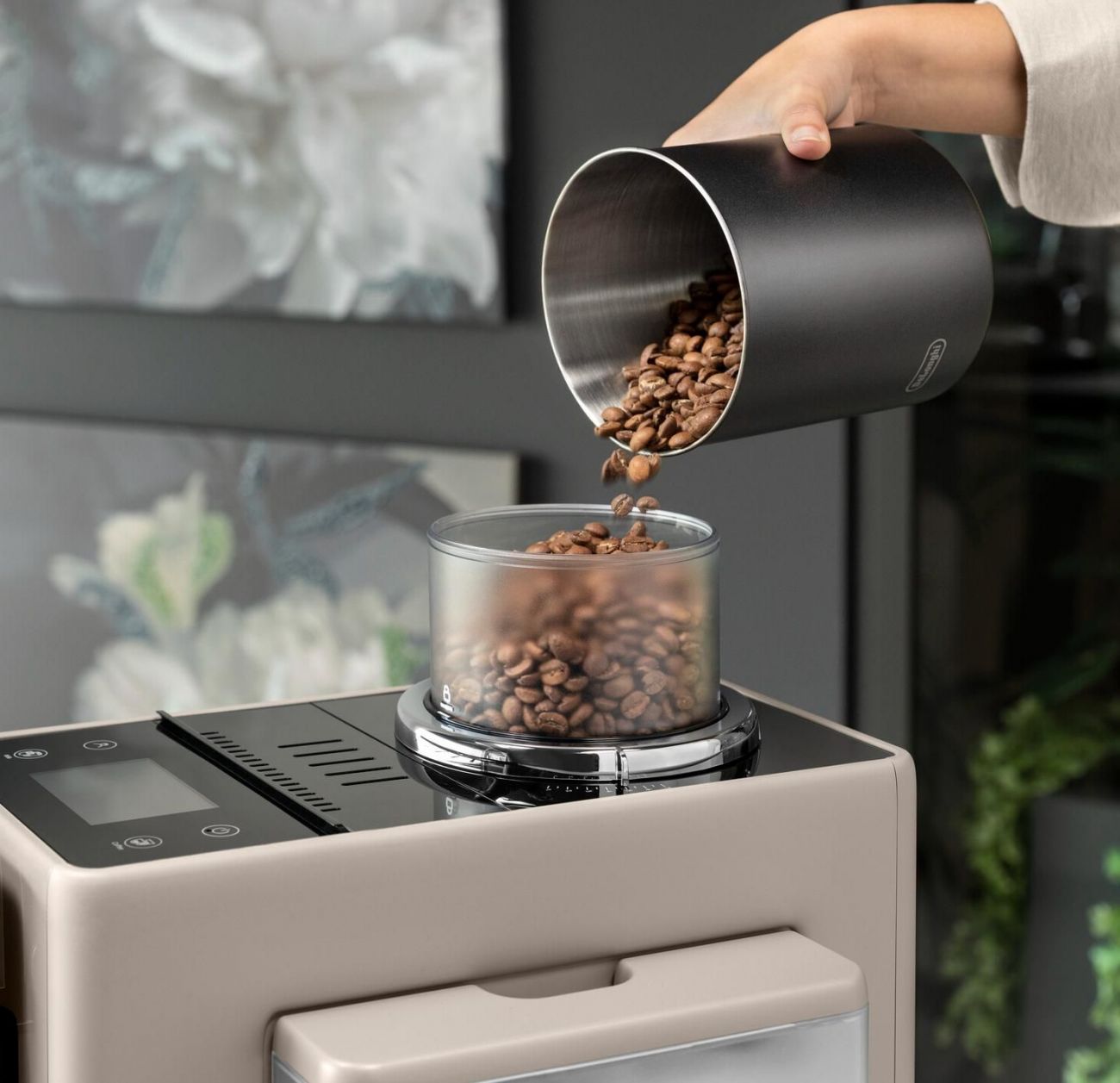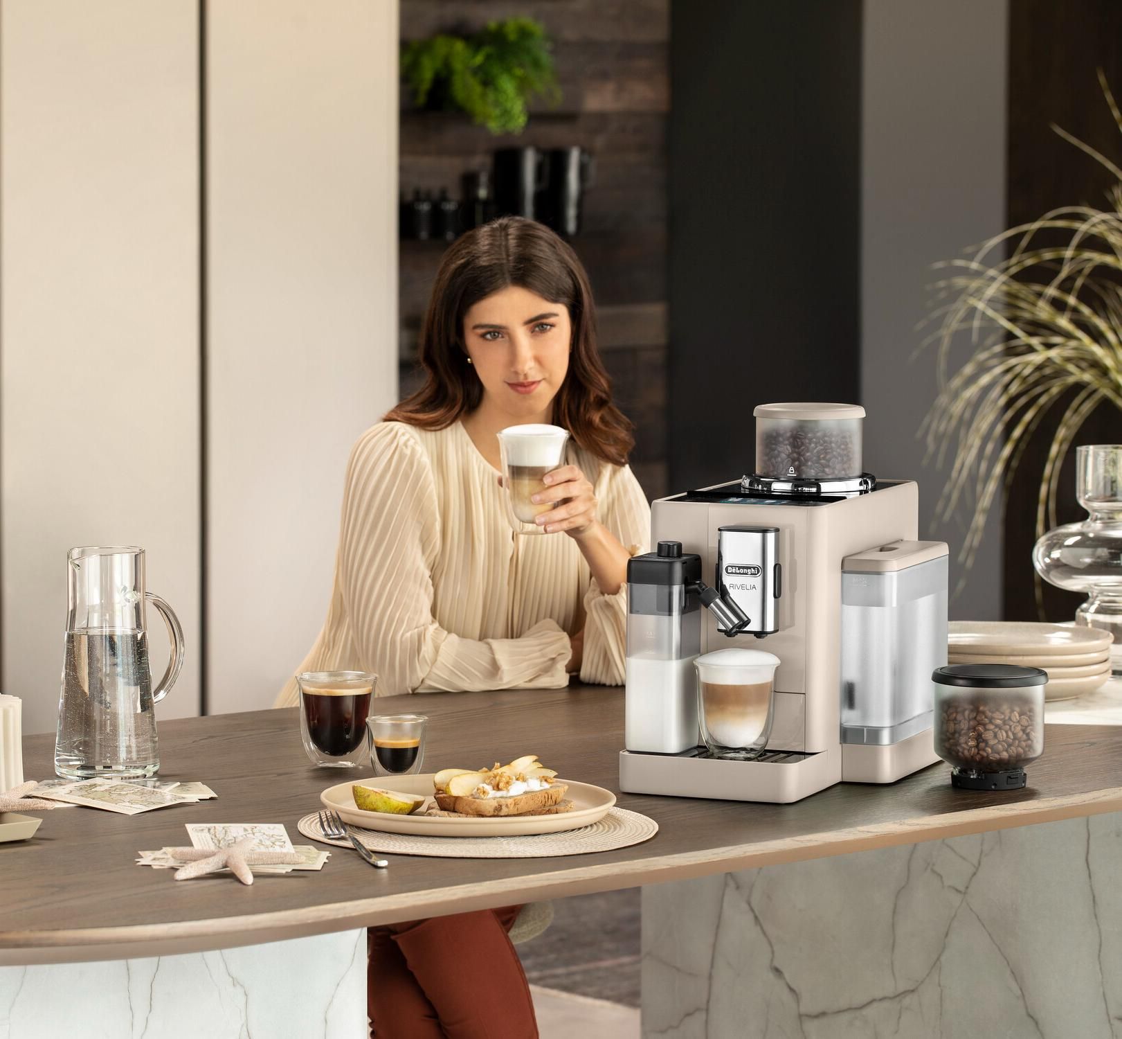 С Rivelia от De'Longhi вы сможете наслаждаться лучшим кофе, настроенным под ваш вкус и требования, в любое время дня. Кроме того, стильный и компактный дизайн с закругленными углами и черным оттенком оникса делает эту кофемашину прекрасным дополнением любой кухни или офисного помещения.