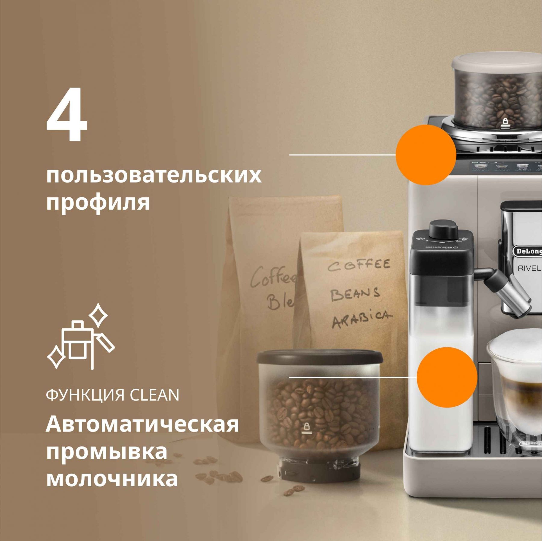 Кофемашина De'Longhi Rivelia предлагает различные преимущества и функции, которые позволят вам наслаждаться кофе максимально комфортно и без усилий. Система переключения зерен позволяет вам легко переключаться между различными сортами кофе и исследовать их вкусовые особенности. Технология Bean Adapt автоматически адаптирует уровень помола, дозу кофе и температуру заваривания в соответствии с выбранными вами зернами, чтобы каждая чашка кофе получилась идеальной. Автоматическая система LatteCrema Hot обеспечивает приготовление пышной и насыщенной молочной пены, идеально подходящей для вашего любимого молочного кофе.
