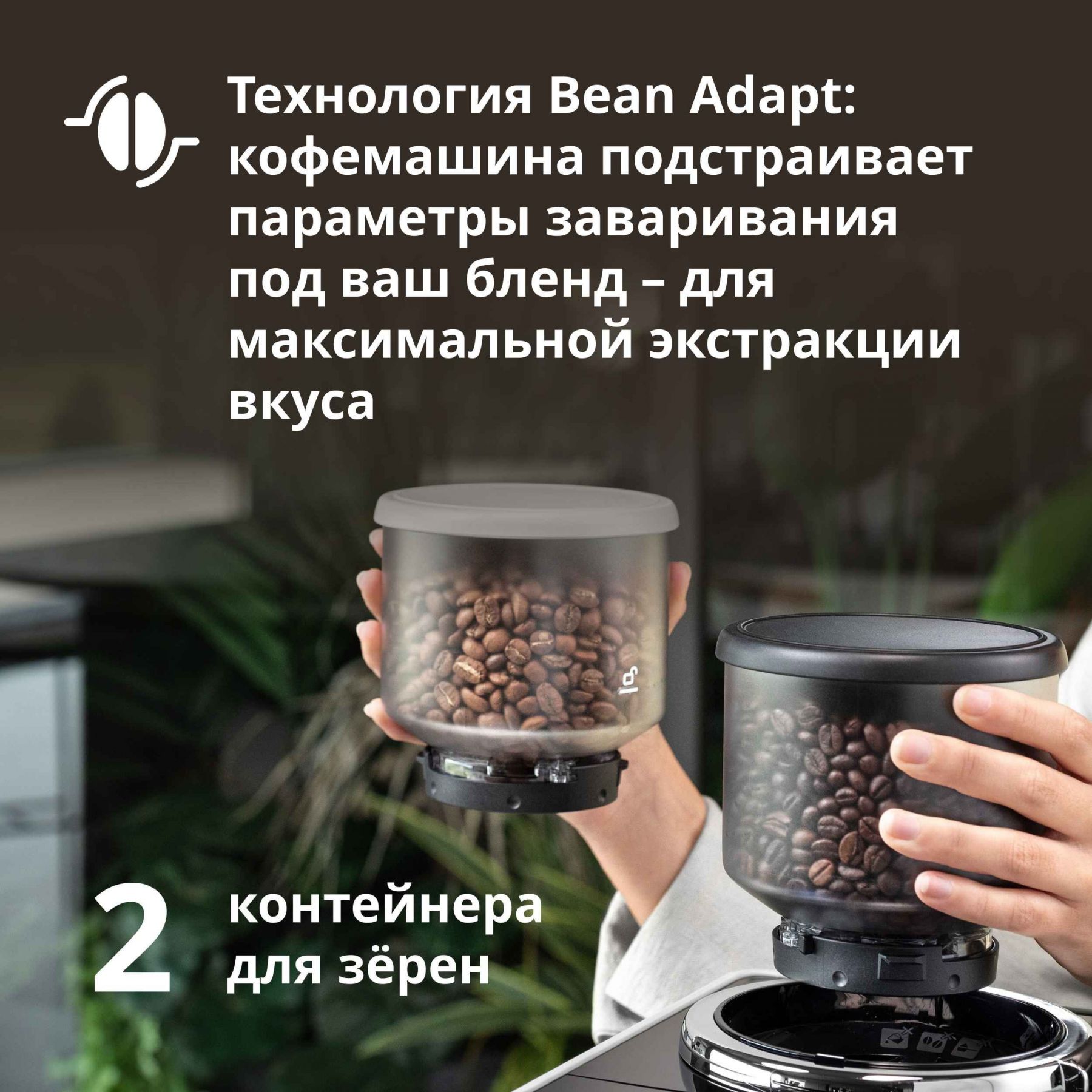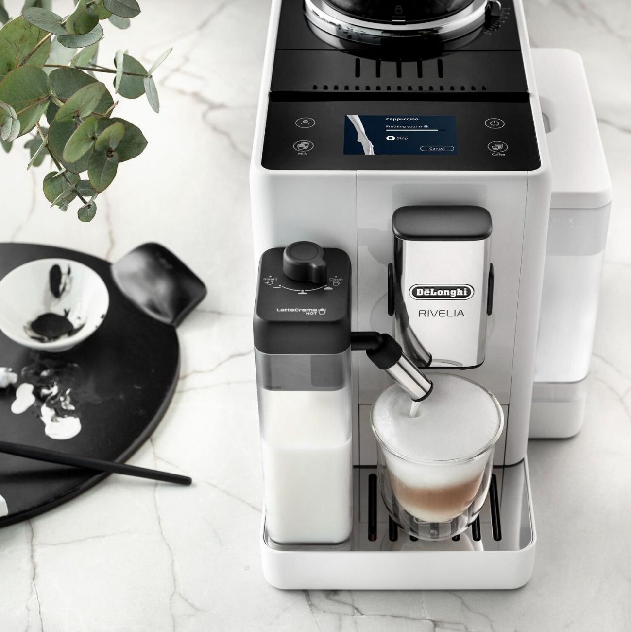 Кофемашина De'Longhi Rivelia предлагает различные преимущества и функции, которые позволят вам наслаждаться кофе максимально комфортно и без усилий. Система переключения зерен позволяет вам легко переключаться между различными сортами кофе и исследовать их вкусовые особенности. Технология Bean Adapt автоматически адаптирует уровень помола, дозу кофе и температуру заваривания в соответствии с выбранными вами зернами, чтобы каждая чашка кофе получилась идеальной. Автоматическая система LatteCrema Hot обеспечивает приготовление пышной и насыщенной молочной пены, идеально подходящей для вашего любимого молочного кофе.