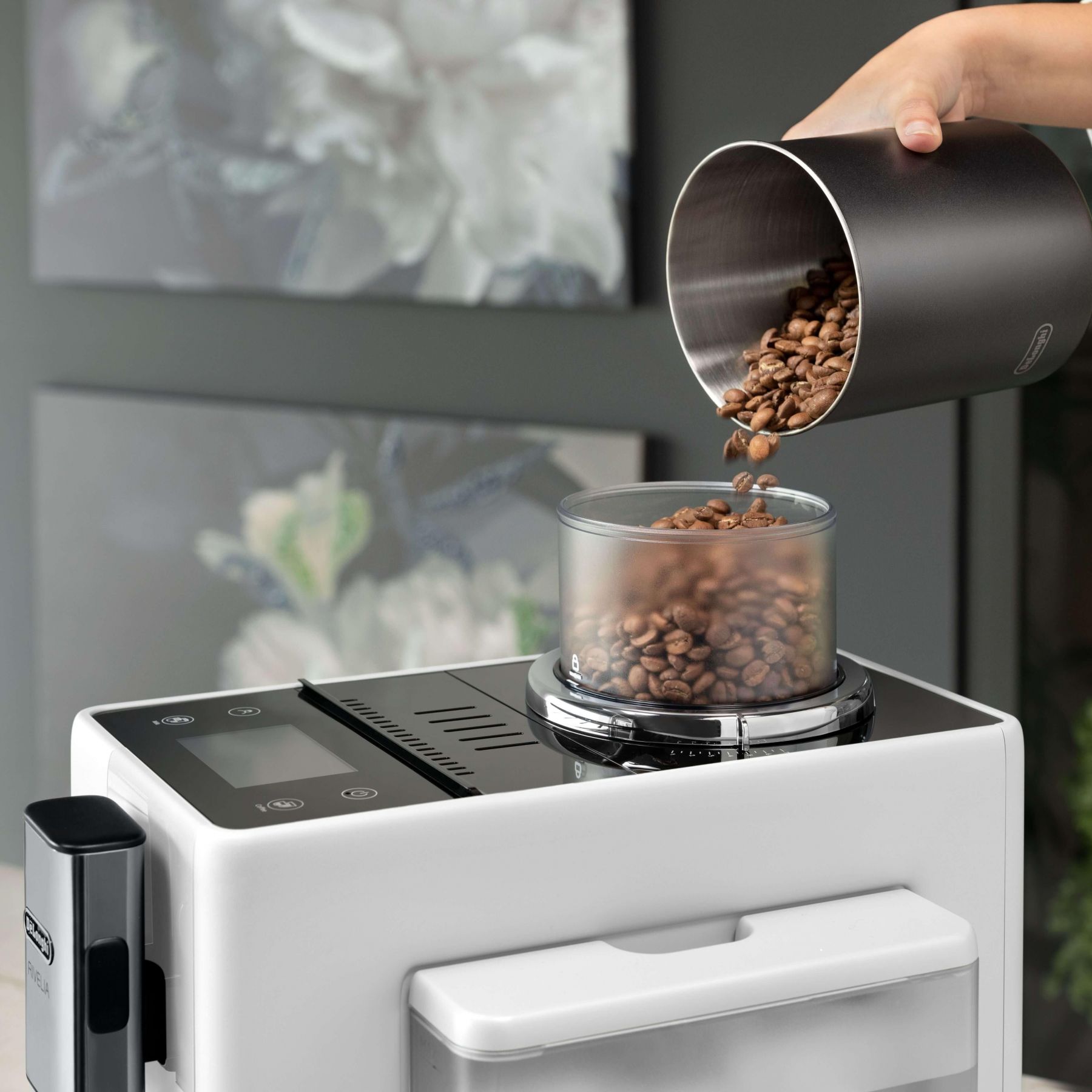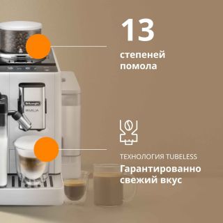 С Rivelia от De'Longhi вы сможете наслаждаться лучшим кофе, настроенным под ваш вкус и требования, в любое время дня. Кроме того, стильный и компактный дизайн с закругленными углами и черным оттенком оникса делает эту кофемашину прекрасным дополнением любой кухни или офисного помещения.