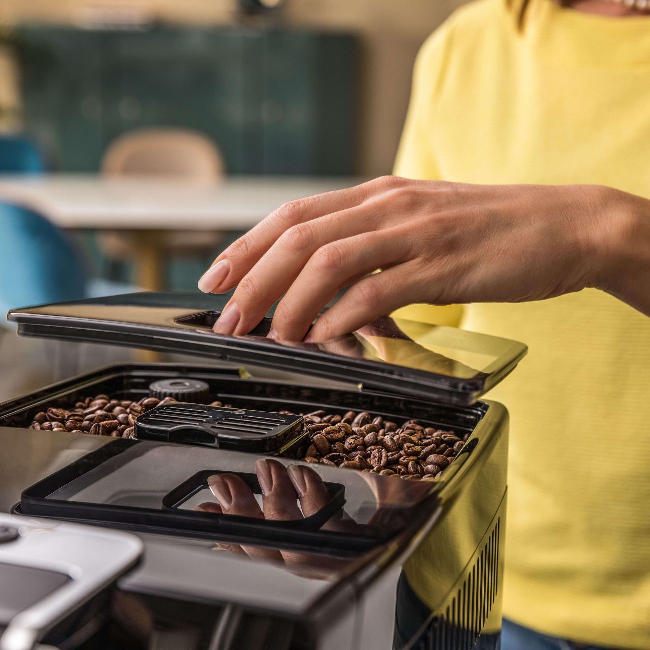 Наслаждайтесь роскошным вкусом кофе с автоматической кофемашиной Delonghi ECAM350.50.B современный обтекаемый дизайн с интуитивно понятным сенсорным управлением. Выберите один из 4 восхитительных напитков, включая эспрессо и капучино.