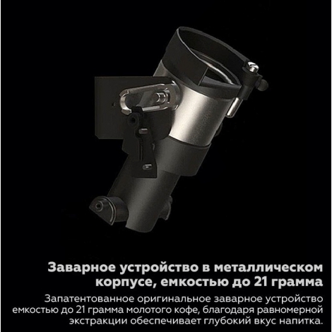 ■ Съемное заварочное (центральное) устройство в металлическом корпусе. Максимальная загрузка заварного устройства – 21 гр. Заваривание возможно с высокой, средней или низкой экстракцией (повышение рабочего давления увеличением производительности помпы).