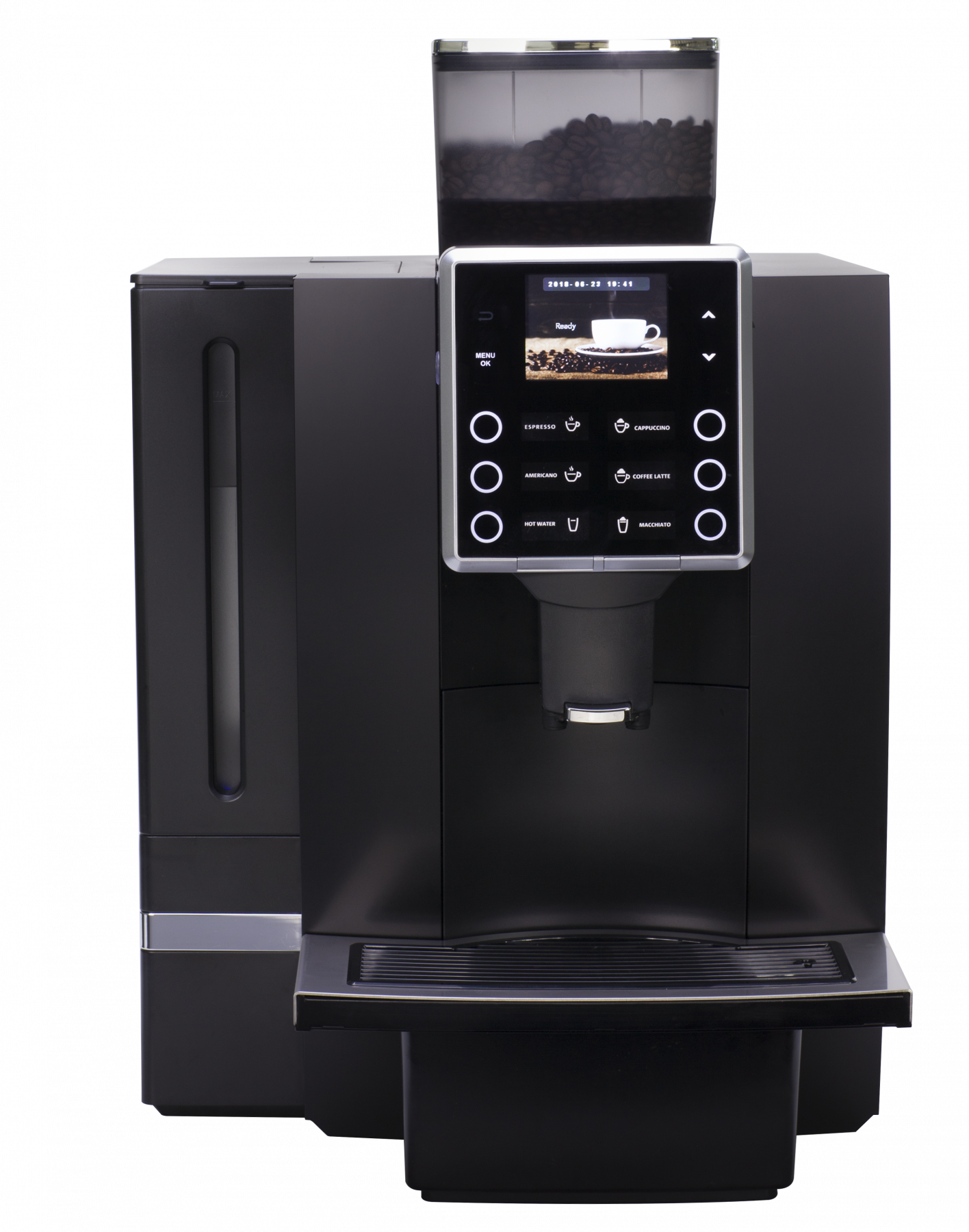 Автоматическая кофемашина Kaffit K90L предназначена для использования в местах с большой проходимостью. Она имеет 3,5 дюйма TFT дисплей с сенсорным управлением, увеличенный до 6 литров бункер для воды, подсветку уровня воды в емкости, возможность выбора заставки экрана, встроенные датчики остатков зерна, а также функция «мультичашка» которая позволяет готовить до 10 чашек одним нажатием. Увеличенная эффективность приготовления кофейных напитков (менее 50 секунд) достигается при помощи использования двух термоблоков. Кофемашину Kaffit K90L можно подключать напрямую  к водопроводу. Имеет много встроенных регулировок, позволяющих добиться идеального вкуса. Стальная коническая кофемолка с тонкой регуляцией степени помола, капучинатор с возможностью переключения на режимы взбивания и подогрева молока, а также системы регуляции температуры, крепости кофе и объема порции в соответствии с индивидуальными предпочтениями. Система автоматической декальцинации и чистки кофейного блока обеспечивает своевременную очистку кофемашины.