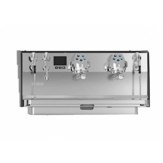 Кофемашина-автомат с двумя высокими термокомпенсированными группами имеет корпус из нержавеющей стали.