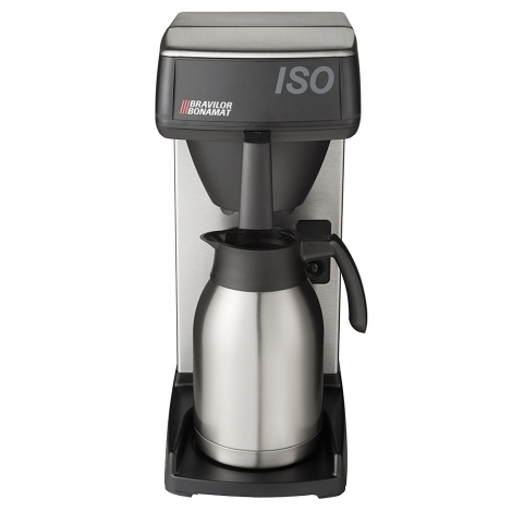 Заливная кофеварка Bravilor Bonamat Iso используется на предприятиях общественного питания и торговли для приготовления фильтрованного кофе. Модель оснащена системой кофеварения и термосом, который поддерживает оптимальную температуру кофе. Корпус и термос с двойными стенками выполнены из высококачественной нержавеющей стали, черные детали - из синтетических материалов.