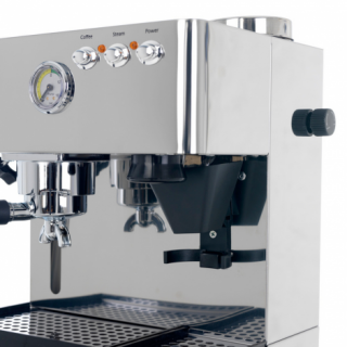 Корпус выполнен из полированной нержавеющей стали. Это немаловажное преимущество, ведь корпус из стали нетолько продлевает срок службы кофемашины, но и делает её устойчивее. Аппарат не будет скользить по поверхности во время того, как вы будете вставлять холдер в группу. Также тяжести кофемашине придаёт встроенная кофемолка.