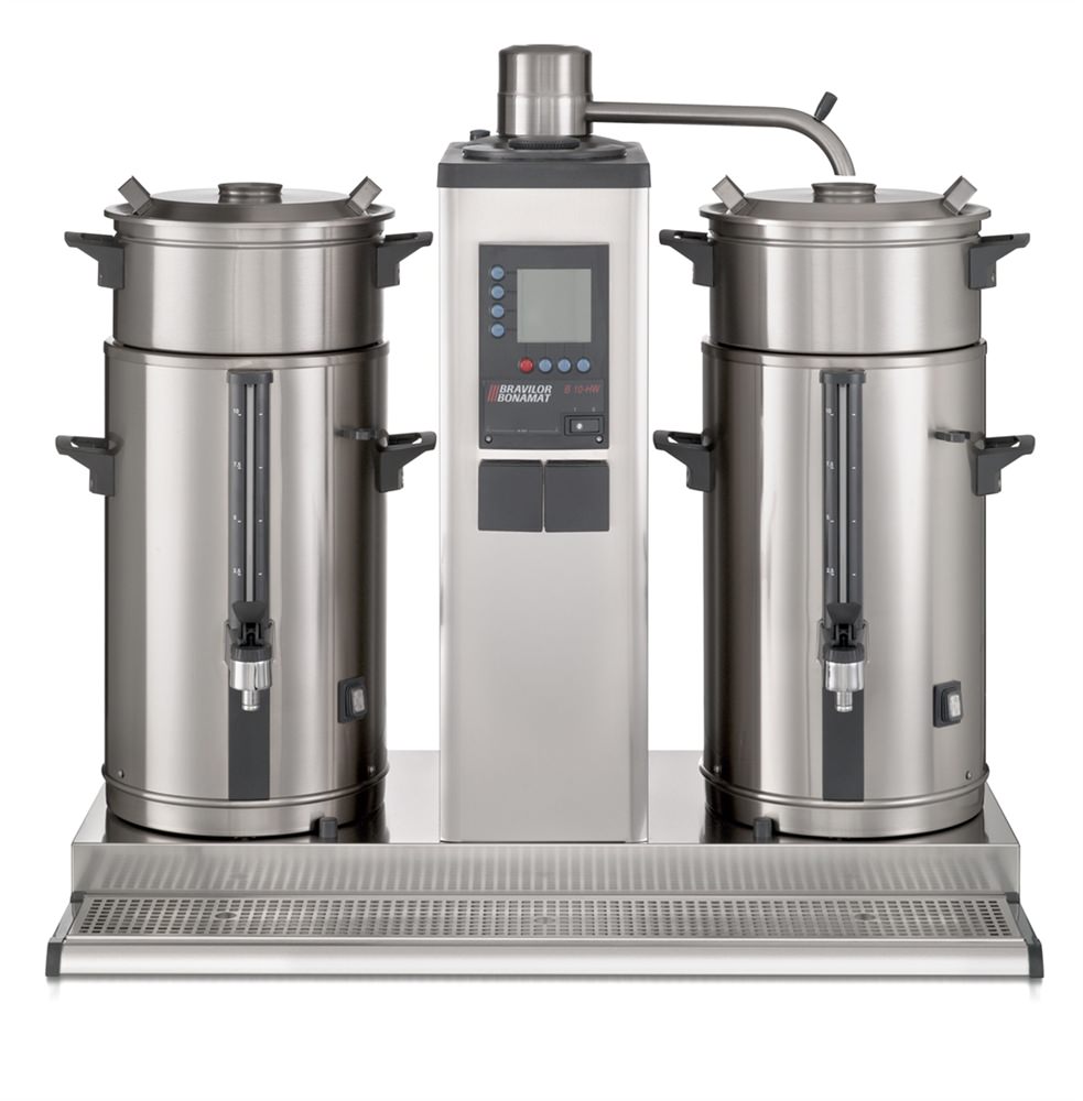 Кофе, приготовленный методом однократного пролива горячей воды через находящийся на фильтре слой молотого кофе, обладает особым ароматом и имеет своих приверженцев. Многие кофейни включают фильтр кофе в свое меню наряду с эспрессо и американо. Также такой подход в приготовлении кофе незаменим когда нужно быстро обслужить большой поток посетителей например завтраки в отелях, шведские столы на массовых мероприятиях, столовые в обеденный перерыв.  Кофемашина Bravilor Bonamat B10 - это круговая фильтр-машина для быстрого заваривания больших объемов кофе методом непрерывного пролива. Она оснащена одним заварочным устройством, двумя емкостями для кофе по 10 литров каждая, панелью с ЖК дисплеем, системой автоматического удаления накипи, счетчиками приготовленных порций, сигнализатором готовности кофе и встроенным таймером. Данная модель стационарно подключается к системе центрального водоснабжения. Идеально подходит для кейтеринга, гостиниц, кафе и столовых.