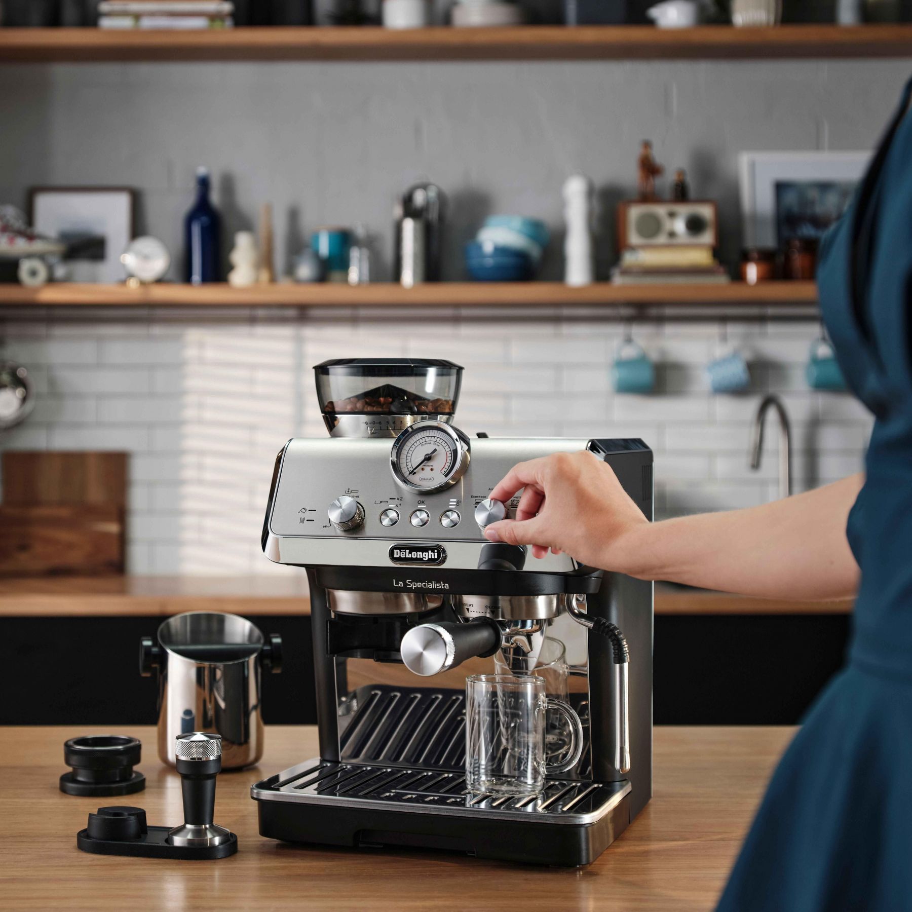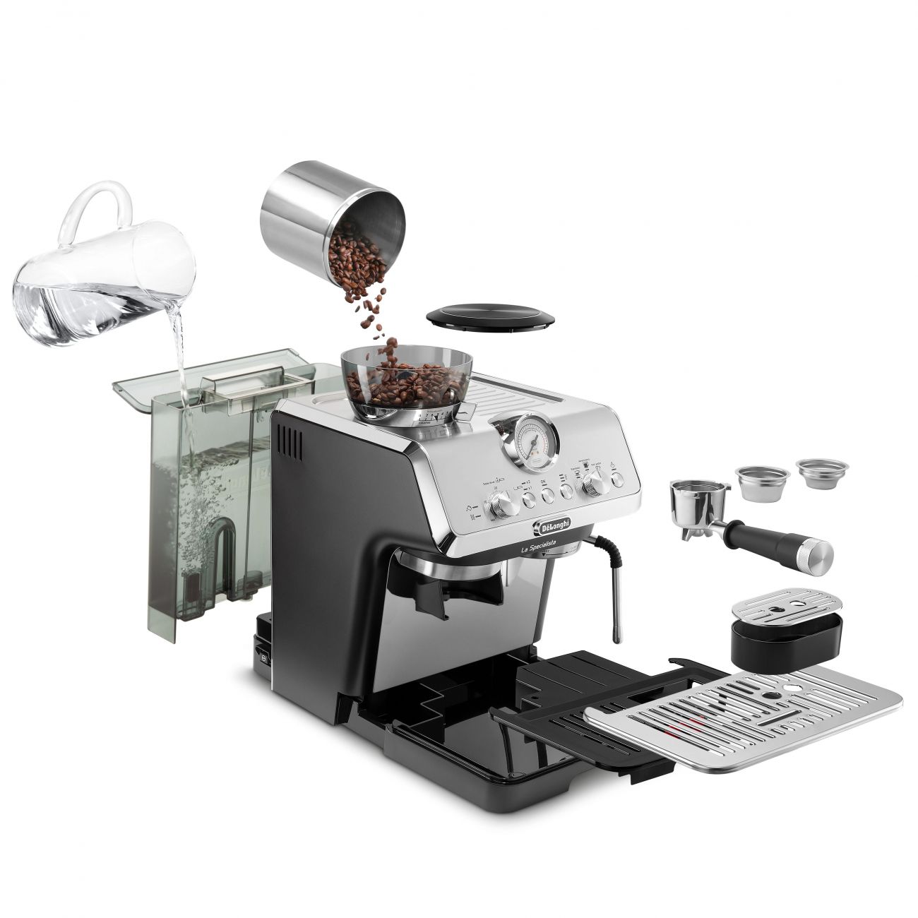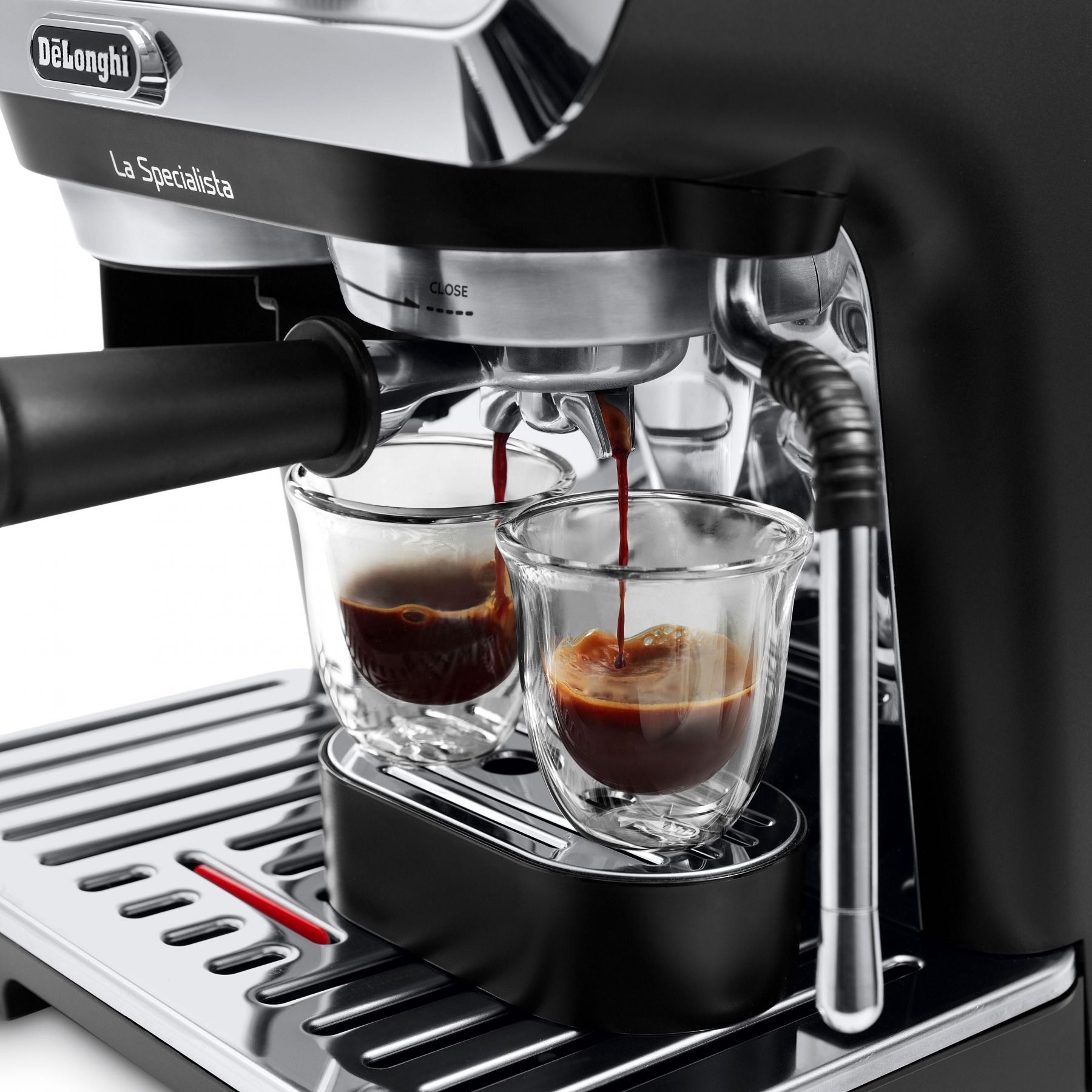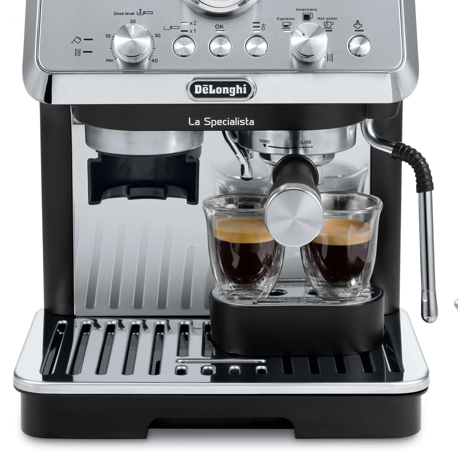 La Specialista — это кофеварка с красивым дизайном, которая позволяет вам готовить неизменно вкусные кофейные напитки на основе эспрессо, не выходя из дома. Экспериментируйте, чтобы найти свой личный вкус, контролируя степень помола, дозировку и температуру, чтобы извлечь из зерен оптимальные вкусовые качества, а в завершение получить шелковистую гладкую молочную пену. Выберите изысканный вкус кофе с бескомпромиссным качеством для вашего домашнего бариста. Рожковая кофеварка DeLonghi EC9155.MB производит внушительное впечатление большое количество стальных деталей и манометр придают прибору стильный, профессиональный вид. Эта модель готовит американо, эспрессо и молочные напитки на его основе (капучино, латте), благодаря ручному вспенивателю. Отдельный носик предназначен для подачи горячей воды.